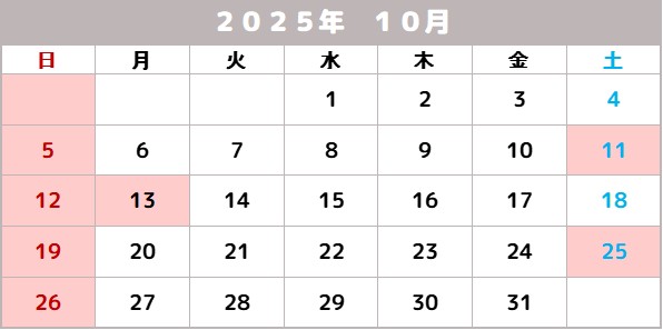 【営業日カレンダー】2025年10月