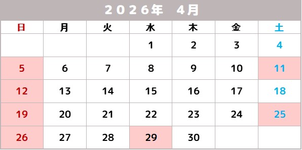 » 【営業日カレンダー】2026年4月